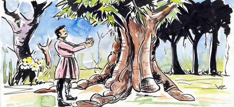 ఆఖరికి కాంతిసేనుడు చెట్టు ముందు మోకరిల్లాడు- "ఓ వృక్షమా! దయచేసి నాకు సహాయం చేయవా!" అని ప్రాధేయ పడ్డాడు. ఆశ్చర్యం! మరుక్షణం ఆ చెట్టు నవ్వింది! కొమ్మల్ని గల గల లాడించింది. "చేస్తాలే, చేస్తాలే" అన్నట్లు వీచింది గాలి.