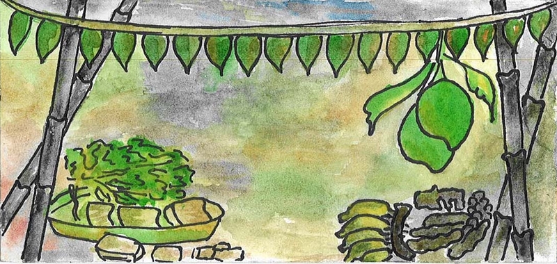 చిన్నితో పాటు అందరూ నవ్వుతుంటే తాత ఇంట్లో ఉగాది పండుగ వేడుకగా జరిగింది. వేప పూతా, కొత్తబెల్లమూ, కొత్త చింతపండూ, చిట్టి చిట్టి మామిడి పిందెలూ- అన్నీ వచ్చినై, పరుగు పరుగున. అటు తర్వాత ప్రతిసారీ అలేఖ్య వాళ్ల ఉగాది సుబ్బయ్య తాత ఇంట్లోనే!