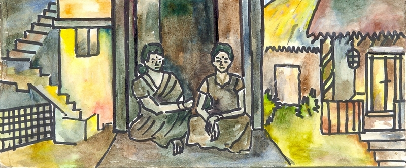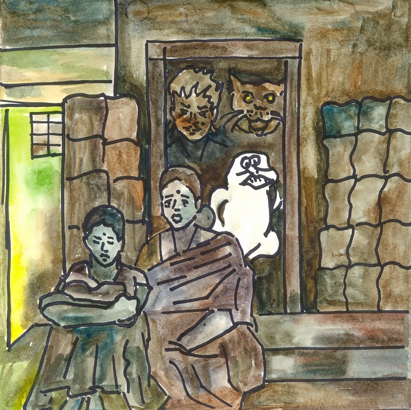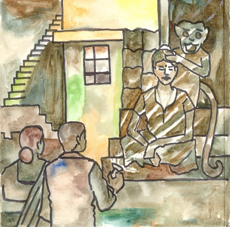 "ఇంటిలో ఎవరో ఉన్నారు- ..ఇంటికున్నది ఒకటే వాకిలి. ఆ వాకిలి దగ్గరే, గీత వాళ్లు కూర్చున్నది! మరి ఎవరైనా ఎట్లా వెళ్లి ఉంటారు, లోపలికి?..."