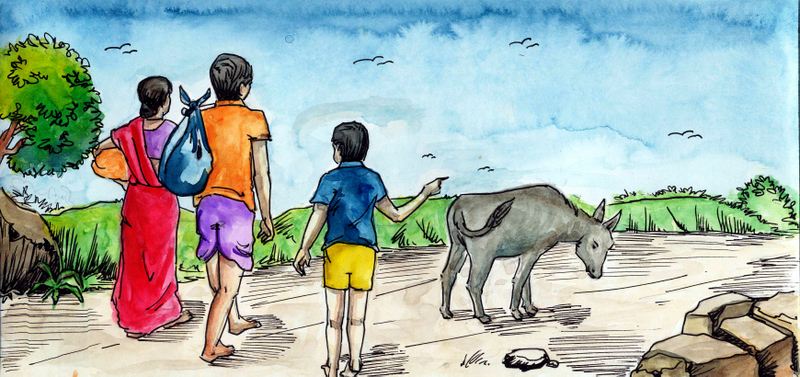 వెనక్కి వస్తూ ఒకచోట విశ్రాంతిగా కూర్చున్నాడు రంగారావు. అంతలోనే ఒక చిన్న పిల్లవాడి ఏడుపులూ, వాళ్ల అమ్మ అరుపులు వినపడ్డాయి. రంగారావుకి జాలివేసింది. "పిల్లవాడు ఎందుకు ఏడుస్తున్నాడమ్మా?" అని అడిగాడు. "చూడు నాయనా, మా బండి చక్రం విరిగి అవతల ఎక్కడో నిలిచి పోయింది. నడక తప్పితే ఇక వేరే మార్గం లేదు మాకు. వీడేమో నడవనని మారాం చేస్తున్నాడు" అంది ఆ తల్లి.