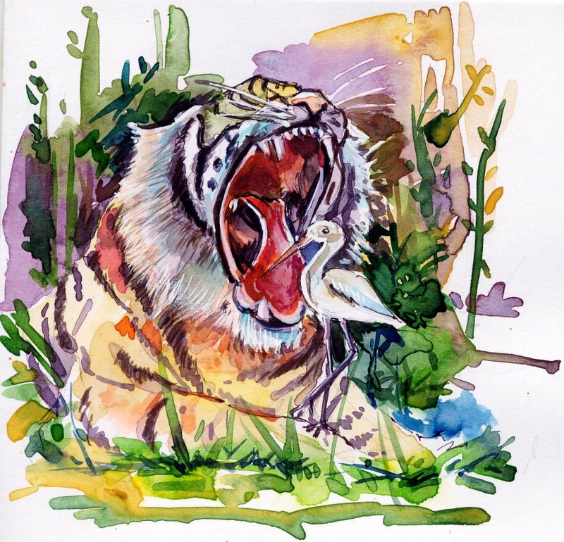ఆ ఆర్తనాదాలకు పైనున్న కొంగ హృదయం ద్రవించింది. అది రావి చెట్టు పైననే కూర్చొని, క్రింద అవస్థపడుతున్న పెద్దపులిని చూసి "ఓ పులీ! నిన్ను ఈ అడవిలో చాలా కాలంగా చూస్తూ ఉన్నాను. ఇంతకుముందు ఎన్నడూ నువ్వు నోరు తెరచి ఇంతగా బాధపడటం చూడలేదు. ఇప్పటి నీ పరిస్థితిని చూస్తే నాకు చాలా ఆశ్చర్యం కల్గుతున్నది. ఇంత కష్టం ఏమొచ్చింది, నీకు? చెప్పు" అన్నది.