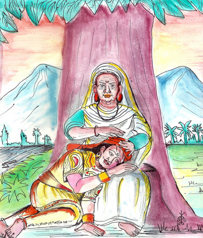 అవ్వ తలెత్తి చూసింది. మాసిన వస్త్రాలతో, ఎర్రని తలపాగాతో కన్నీళ్లు కార్చుతూ దీనంగా నిలబడ్డ అశోకుడు కనిపించాడు.
