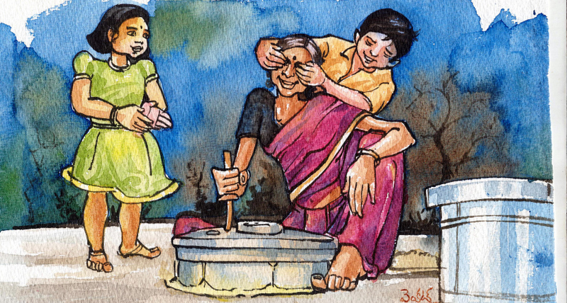 అమ్మమ్మ: ఎవరిది!? ఏమిటిది?!...ఏయ్! ఎవరబ్బా?! ఉం.. నా ప్రియమైన మనవడు-మనవరాలు! నిహార్, జాస్మిత వచ్చేశారు అమ్మమ్మ ఊరికి!