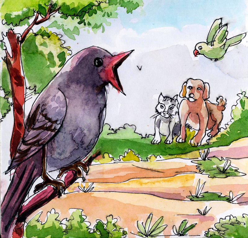 "హుష్! ఊరుకో, ఏమిటా మాటలు?!" అంది కోకిల, పిల్లిని పక్కకి లాగుతూ.
