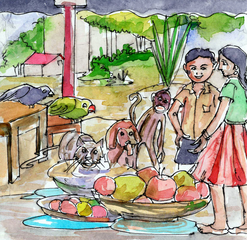 వీటిని చూసిన రాము,శీతల వాటికి పండ్లూ, పాలూ పెట్టారు- అవన్నీ తమని చూడటానికి వచ్చాయని తెలియక పోయినా!!!!