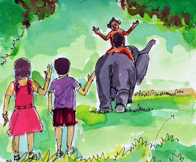 కానీ కోతి ఇప్పుడు ఎక్కువ సేపు అడవిలోనే ఏనుగుతో గడుపుతున్నది. అప్పుడప్పుడూ, సెలవురోజుల్లో మాత్రం చందు-బిందులను చూడడానికి వస్తోంది.