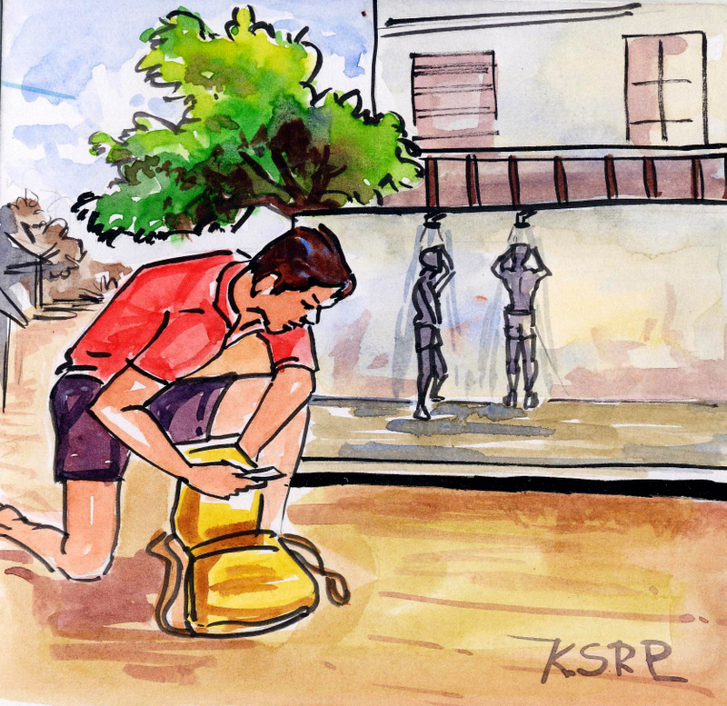 పైకి వాడు వెంకటేష్తో అన్నాడు "చూడురా, రాము దగ్గర డబ్బులు ఎక్కువ ఉన్నట్లున్నాయి. బస్సు ఎక్కి వస్తాడు. అది కూడా ఎప్పుడుందో ఏమో. మనం కాలినడకన చిన్నగా పోతూందాం పద" అని. "వద్దులే, కొంచెం ఆగు. వాడిని రానివ్వు" అని ఎంత చెప్పినా వినలేదు వాడు. "సరే, కానివ్వు" అని వెంకటేష్ గోపీతో కలిసి మెట్లు ఎక్కటం మొదలు పెట్టాడు.