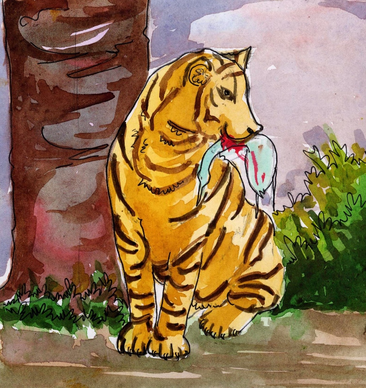 మరుక్షణం ఆ పులి చటుక్కున దాని మెడను కొరికేసి దాన్ని తినేసింది.