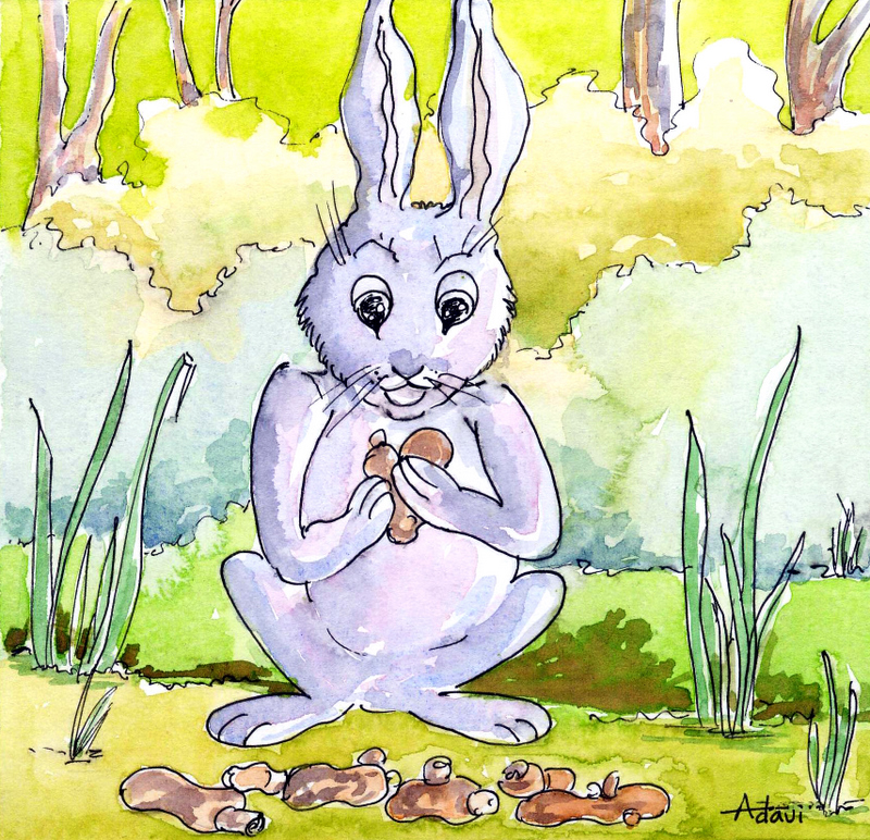 అనగనగా ఒక అడవి. ఆ అడవిలో ఒక బుల్లి కుందేలు ఉండేది. ఒక రోజు ప్రొద్దున్నే అది నిద్రలేచి, తన పొదలోంచి బయటకు వచ్చి, ఒళ్ళు విరుచుకుంటూ అటూ ఇటూ చూసింది. అప్పుడప్పుడే తెలవారుతూ ఉంది.