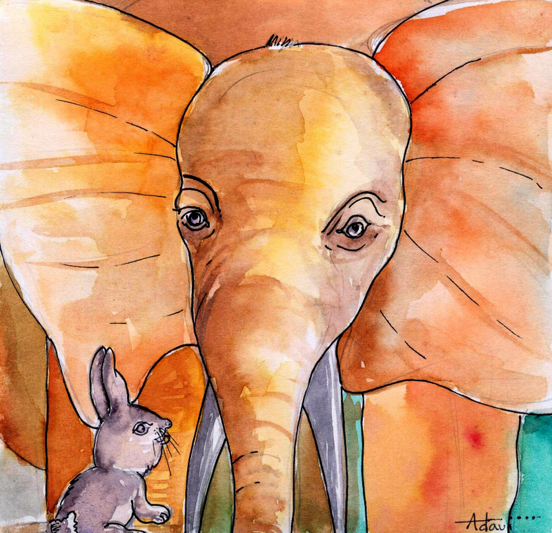 "ఏనుగు బావా, ఏనుగు బావా, తిరిగి తిరిగి కాళ్ళు నెప్పి పుడుతున్నాయి. తగ్గటానికి ఉపాయం ఏమైనా చెప్తావా" అని అడిగింది కుందేలు .