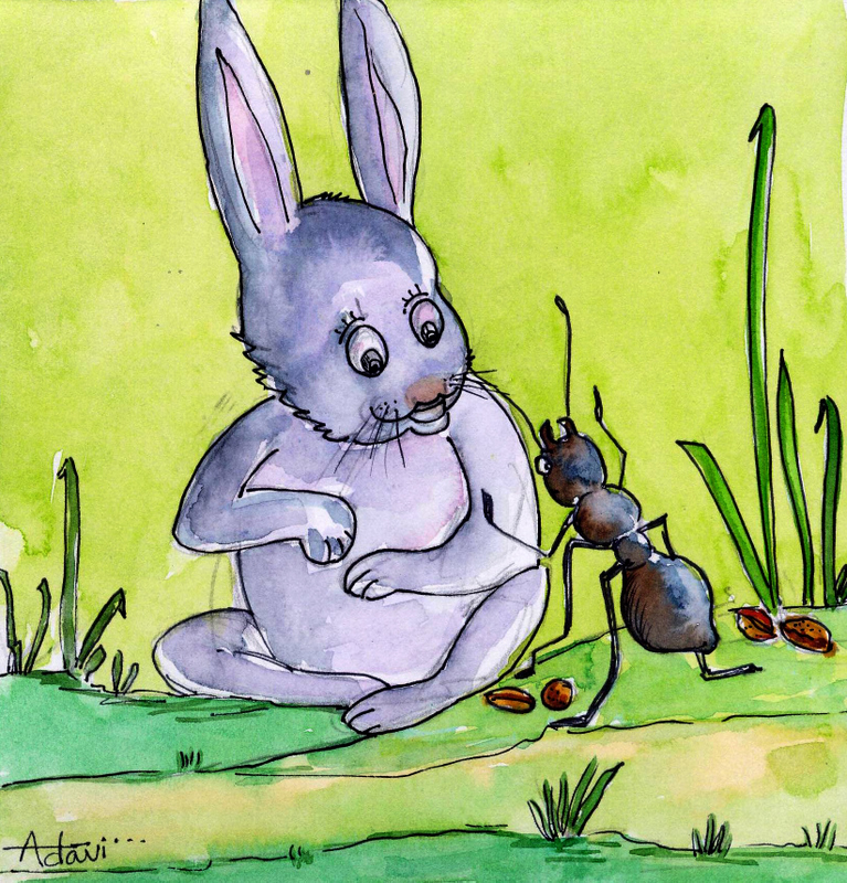 'కాలు నెప్పి తగ్గటానికి ఏమైనా చిట్కాలు చెపుతుందేమో అనుకుంటే పెద్ద ఉపన్యాసం దంచేసింది. ఏమిటో!' అనుకుంటూ ఇంటి ముఖం పట్టింది కుందేలు. ఇంతలో ఒక ఏనుగు ఎదురొచ్చింది.