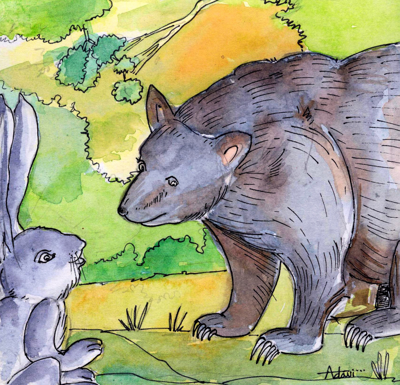 కుందేలుకు ఏమీ అర్థంకాక, బుర్రగోక్కొని మళ్ళీ ఇంటి దారి పట్టింది. వెళుతూ వెళుతూ ఉంటే ఎలుగుబంటి ఎదురొచ్చింది.