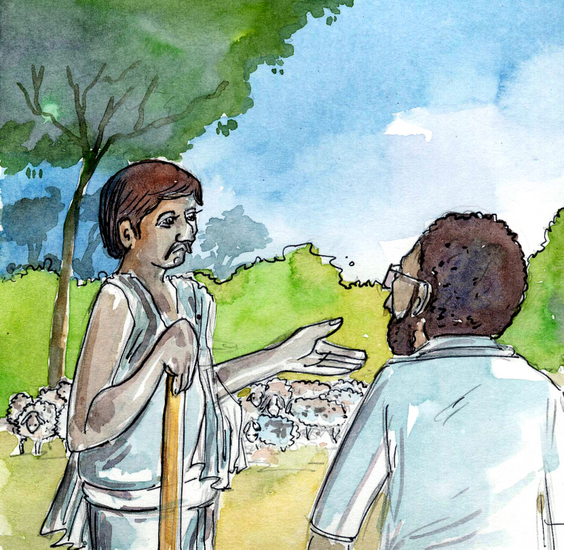 దాంతో ఆయన ఆ గొర్రెల కాపరి దగ్గరికి వెళ్ళి "ఏమోయ్! నీ గొర్రెను ఒకదాన్ని నేను కొనాలనుకుంటున్నాను; ఎంత ఖరీదు అవుతుందో చెప్పు" అని అడిగాడు.