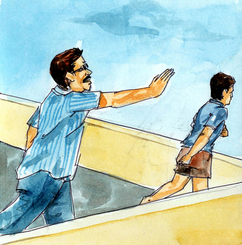 వాడి మెదడు పనిచేయటం మానివేసింది. ఇంకొంచెం సేపట్లో సార్ వచ్చేస్తారు- తను ఆలోగా ఏదైనా చేసెయ్యాలి- అని మెదడులో ఆలోచన సుడిలాగా తిరిగింది. "ఇక్కడినుండి తప్పించుకోవాలి- దూకి పారిపోతాను" అని వాడు కోచింగ్ సెంటరు మేడపైనుంచి దూకెయ్యబోయాడు- అంతలోనే ఎవరో వాడిని గట్టిగా పట్టుకొని వెనక్కి లాగారు. "వదలండి-నేను పారిపోవాలి- రాఘవేంద్ర సార్ నన్ను చంపేస్తారు- నేను హిందీలో తప్పాను" అరుస్తున్నాడు ధనుష్.