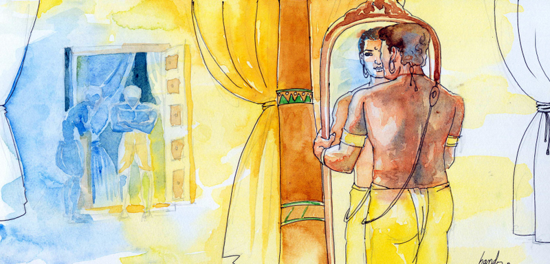 మెల్లగా అతనిలో జ్ఞానం‌ ఉదయించింది. అద్దం అతన్ని ఆకర్షించటం మానేసింది.