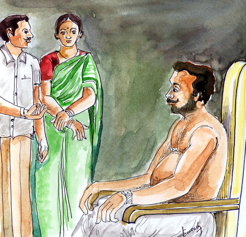 "ఏదో ఓ రసాయనం! చెబుతాగా, ముందు నేను చెప్పినట్లు చెయ్యి- ఫ్రేముకు దీన్ని పట్టించు" గట్టిగా చెప్పాడు క్రిష్ణయ్య .