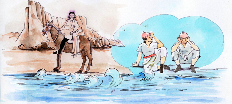 చివరికి అతను అట్లా తిరుగుతూ తిరుగుతూ సాయంత్రానికల్లా అలసిపోయాడు, దారి తప్పాననుకున్నాడు. అతను ఎటు వెళ్ళినా, మరి, చెరువే అడ్డం వస్తున్నది!