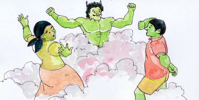 "ఏమిటీ! నేను- తెలివి లేని దాన్నా?!" అంది భూతం, కోరలు చాపి.