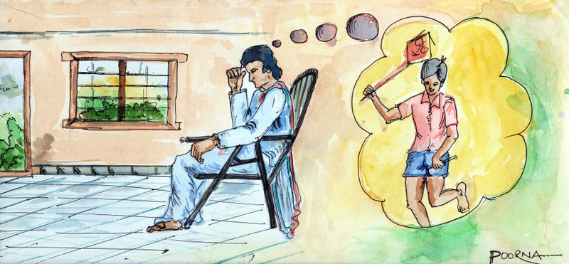 పంతులు చాలా సంతోషంగా నవ్వుతూ, 'ఓ, నేను మంచి మంచి మంత్రాలు నేర్చుకున్నాను. నువ్వు మంచం మీద కూర్చో, నీకు వినిపిస్తాను' అన్నాడు.