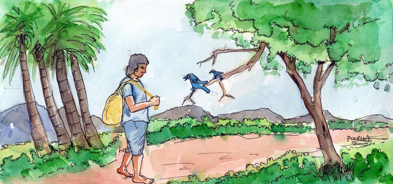 తాటిచెట్లు చాలా సంతోషపడ్డాయి. 'అవునా, నువ్వు చదువు నేర్చుకునేందుకు వెళ్తున్నావా? అయితే మేమొక మంత్రం చెబుతాము. మాకొక అట్టు ఇస్తావా?' అన్నాయి. పంతులు అమాయకుడు కదా, 'సరే' అన్నాడు.
