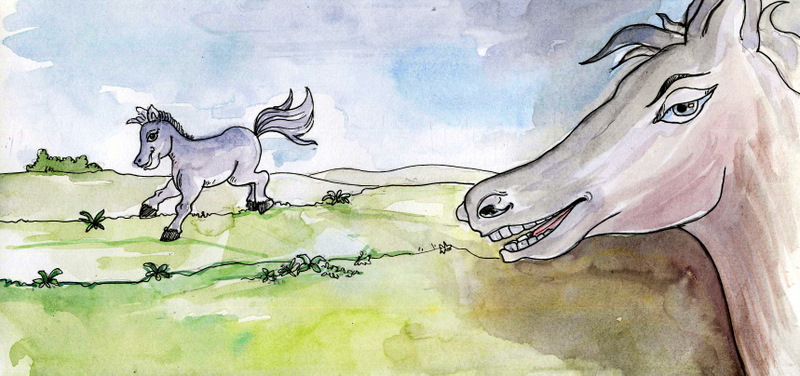 అనగనగా ఒక ఊళ్ళో ఒక చలాకీ గుర్రపు పిల్ల ఉండేది. దాని పేరు జాకీ. దానికి వేగంగా దౌడు తీయడమన్నా, కొత్త ప్రదేశాలు చూడటమన్నా భలే సరదా. పరిగెడుతూ పోతే ఆకలి మాట కూడా గుర్తుకురాదు దానికి.