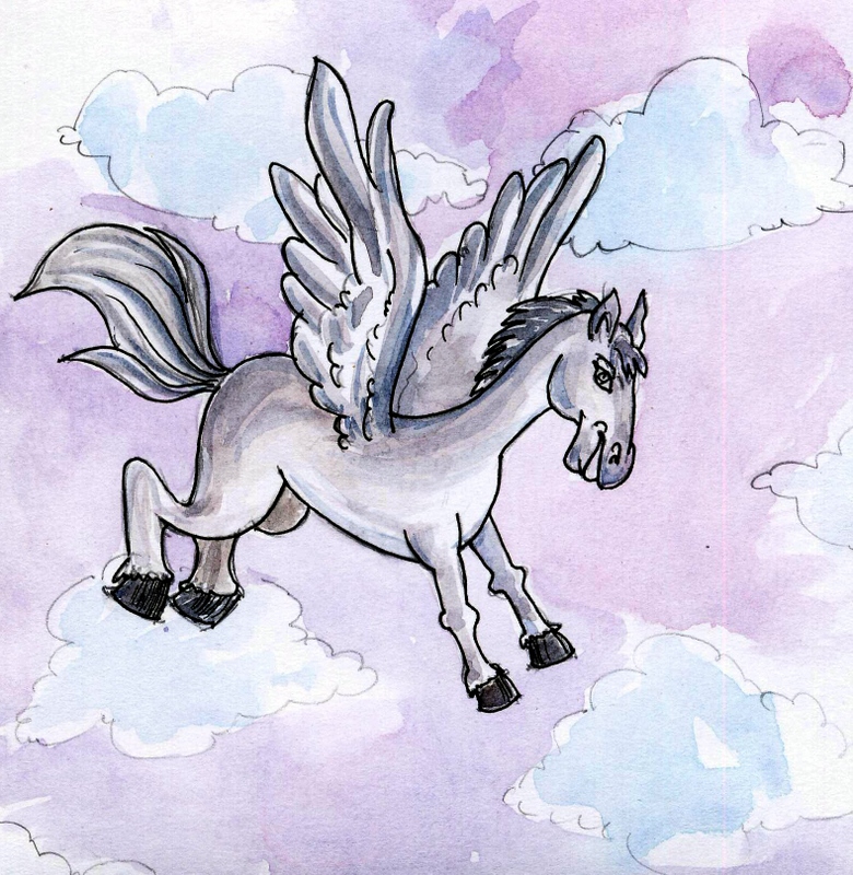 ఆ రోజున కలత నిద్రలో జాకీకి ఒక అందమైన కల వచ్చింది: తనకు రెండు రెక్కలు వచ్చేసినట్లూ, వాటితో అది ఆకాశంలో ఎగురుతూ ఉన్నట్లూను! అది ఎగురుతుంటే క్రింద ఉన్న పశువులన్నీ తనను వింతగా చూస్తున్నాయంట, అట్లా పైన ఎగురుతూ క్రింద ఉన్న ఊళ్ళని చిన్నవిగా చూడటం భలే తమాషాగా ఉందిట దానికి. క్రొత్త క్రొత్త ప్రదేశాలు రోజూ బోలెడు చూడగల్గుతోందట, ఆ రెక్కల జాకీ. ఆకాశంలో గడ్డి ఉండదు కదా మరి? అందుకని క్రింద ఎక్కడైనా పచ్చటి పచ్చిక కనిపించగానే దిగి, కడుపు నిండా మేసి, చక్కగా ఎగిరిపోతోందిట.