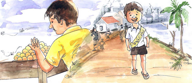 రాజుగారు రాముని గొప్పగా సత్కరించారు. ఏనుగుమీద కూర్చోబెట్టి ఊరేగించారు. రాముకి చాలా సంతోషం వేసింది. మనసు కొంచెం సేపు మబ్బుల్లో తేలిపోయింది... అంతలోనే వాడి ముఖం మీద నీళ్లు వచ్చి పడ్డాయి- "లేవరా, గాడిదా! రాణి, రాజు, సింహాసనం, ఏనుగులూ అన్నీ ఎక్కడివక్కడే ఉన్నాయిలే! లేచి వెంటనే పళ్ళుతోముకొని బడికి బయలుదేరలేదంటే నీకు ఇక్కడే స్నానం చేయించేస్తాను నేను" అంటూ మరో చెంబెడు నీళ్ళు వాడి ముఖం మీద చిలకరించబోయింది రాము వాళ్ళమ్మ!
