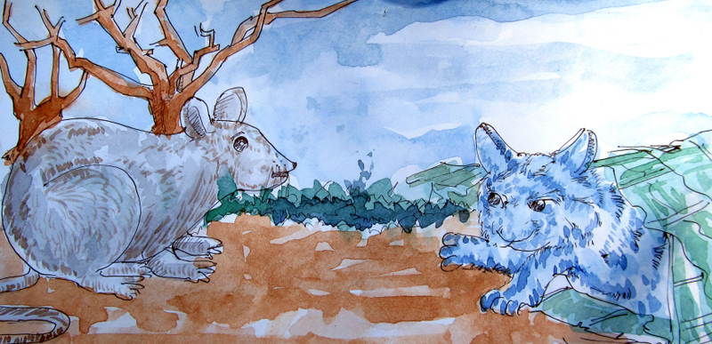 "వేటగాడు వచ్చి వలలో చిక్కిన పిల్లిని ఎట్లాగూ చంపేస్తాడు. అప్పుడు తమకు కొన్ని మాంసపు ముక్కలు దొరక్కపోవు!" అని వేచి చూస్తున్నాయి, అవి.