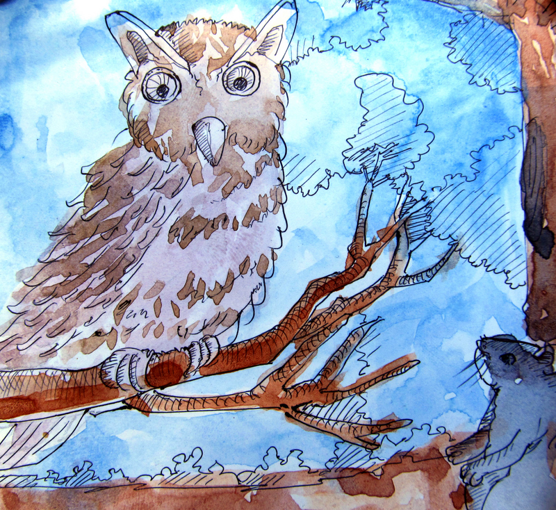 అయితే ఆ సమయానికి అక్కడే దగ్గర్లో ఓ పొదలో పొంచి ఉన్నదొక ముంగిస; ఆ చెట్టు కొమ్మ మీదే కూర్చొని చూస్తున్నది ఒక గుడ్లగూబ!