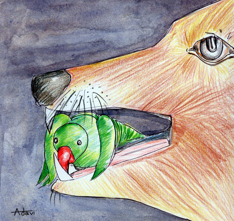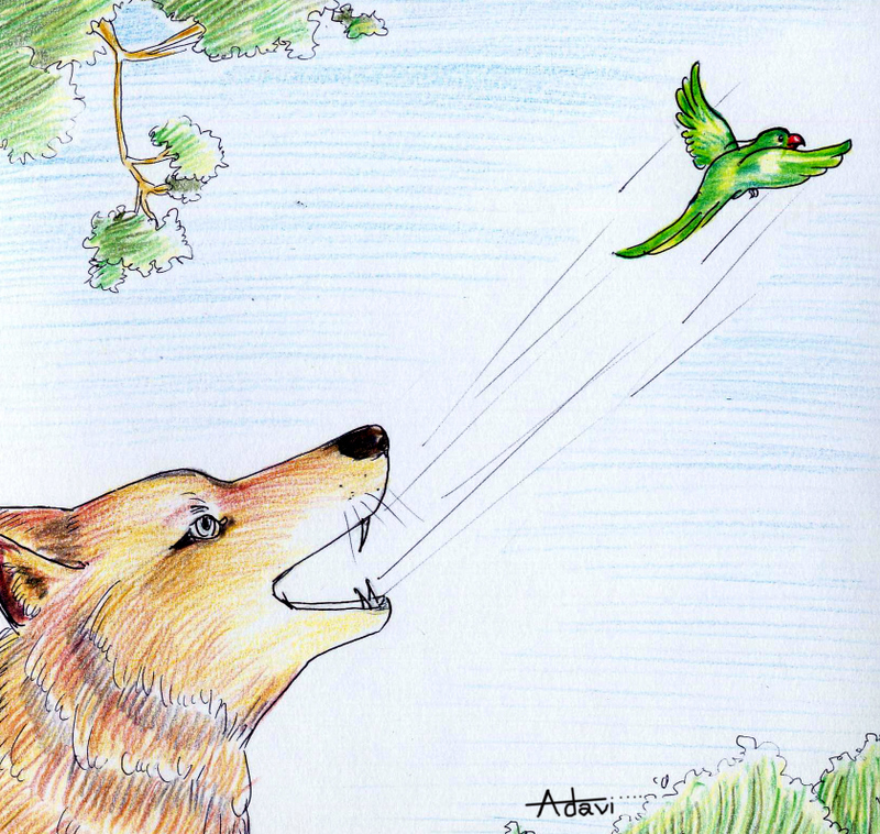 చిలుకకు మునగ చెట్టు ఎక్కినట్లయింది. మురిసిపోయి, ఒక్క క్షణం పాటు తన కంటి రెప్పలు మూసింది- అంతే- నక్క ఒక్క ఉదుటన ఎగిరింది. చటుక్కున చిలుకను నోట కరుచుకుంది.