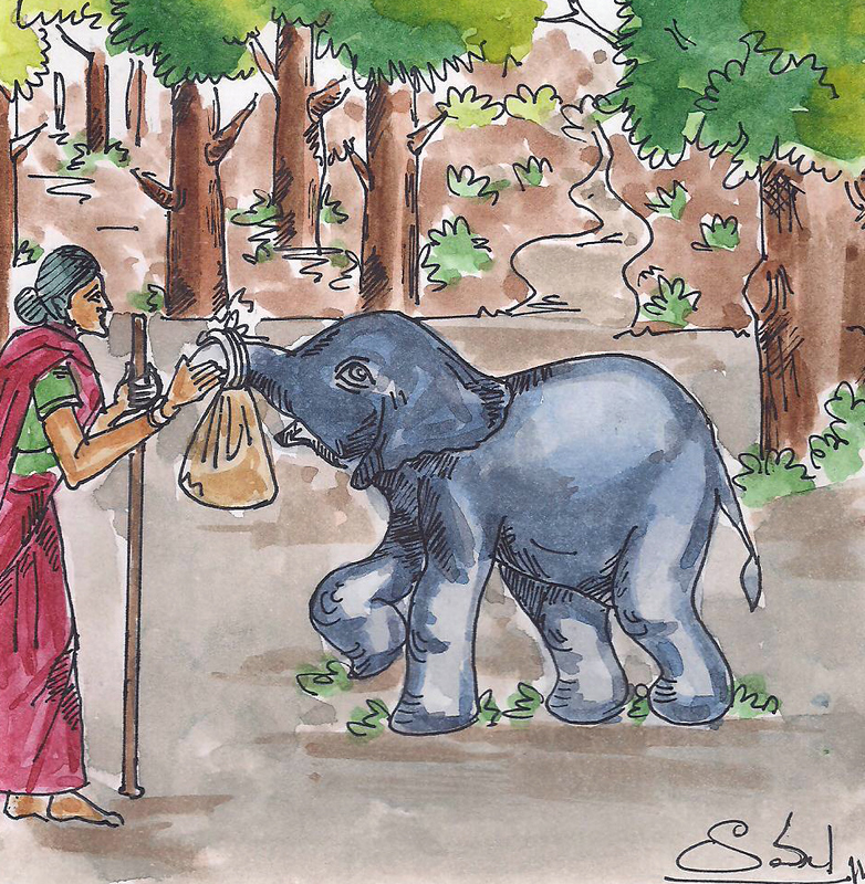 అటుపైన ఏనుగు అడవిలో స్వేచ్ఛగా తిరుగుతూ, కష్టాల్లో ఉన్నవాళ్ళకు అందరికీ సాయం చేస్తూ గడిపింది. అంత చక్కని ఏనుగును సాకినందుకు అవ్వ ఎంతగానో గర్వపడింది.