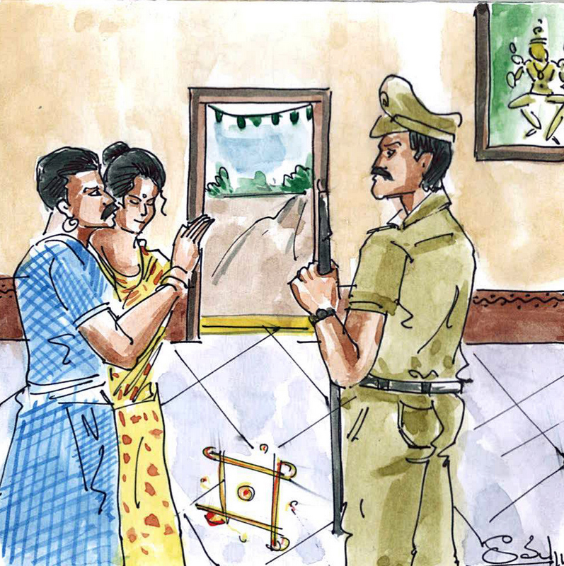 పక్కవాళ్ళు పరుగెత్తుకొని వచ్చారు. "పోలీసులకు ఫిర్యాదు చేయండి" అన్నారు.