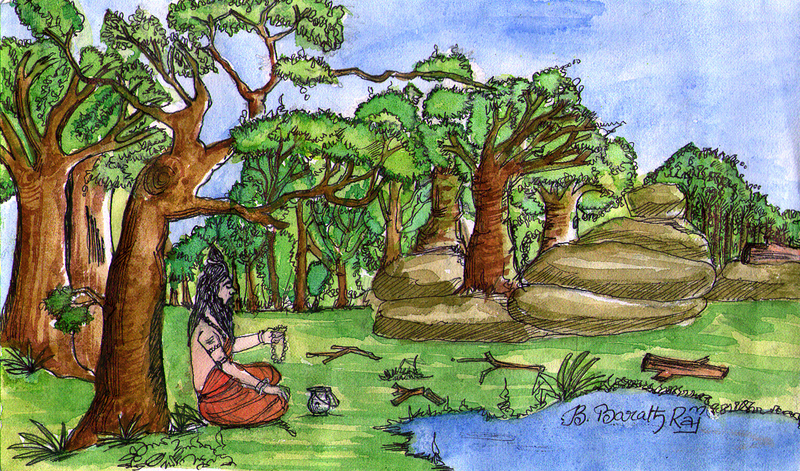 అతని గుండె ఉద్వేగంతో ఊగిసలాడిపోయింది. తను ఏమాత్రం కదిలినా, పులి ధ్యాస చెదిరిపోతుంది. అది ఇక తన మీదికి దూకుతుంది- ఖచ్చితంగా! ఇప్పుడిక తను చేయగలిగిందంటూ ఏమీ లేదు- తన శరీరాన్ని ఇనుపకడ్డీ మాదిరి గట్టి చేసుకొని, స్థిర చిత్తంతో- ఏమాత్రం కదలకుండా కూర్చున్నాడు. ఇక ఇప్పుడు అతని మనసు తొణకటం లేదు. మెల్లగా ధ్యానం కుదిరింది.
