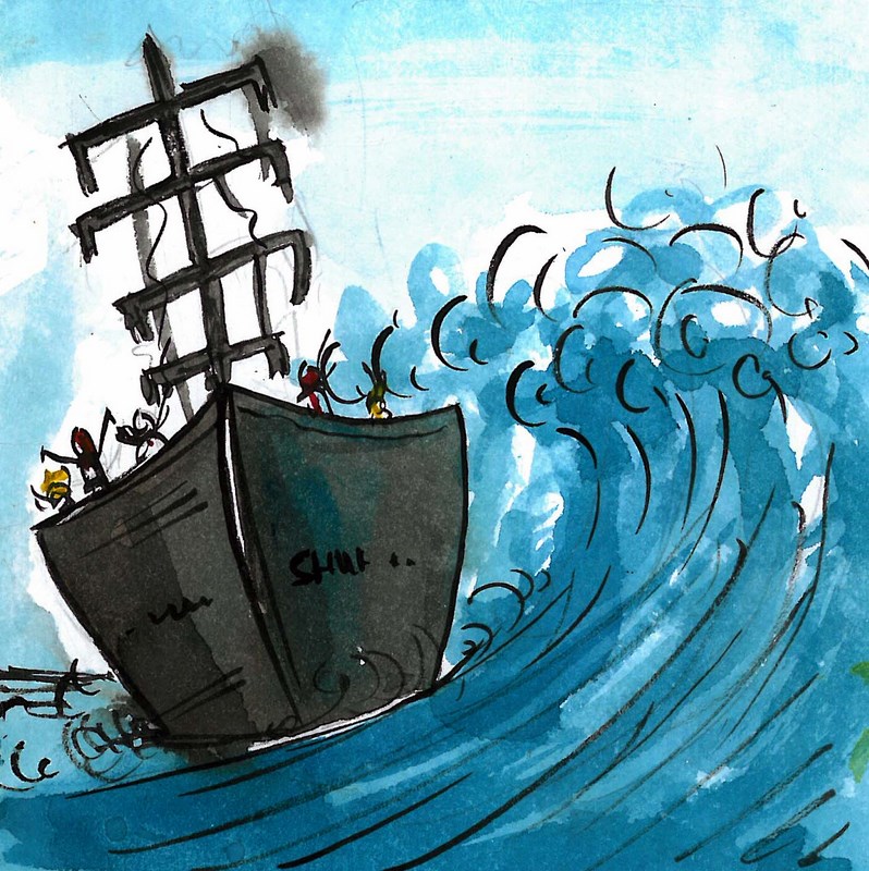 అయితేనేమి, దురదృష్టం వెంటాడింది. ఒకరోజున సముద్రంలో తుఫాను చెలరేగింది. అలలు అంతెత్తున ఎగిరి పడ్డాయి- వాళ్ళున్న పడవ ముక్కలు ముక్కలైపోయింది!