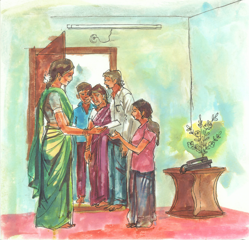 “మా అమ్మాయి పెళ్ళి- వచ్చే మంగళ బుధవారాల్లో. కార్డు ఇవ్వడానికి వచ్చాం!" అంటూ కార్డు తీసి ఇచ్చిందావిడ. వాళ్ళు ఎవరో తెలియకపోయినా తల ఊపాను.