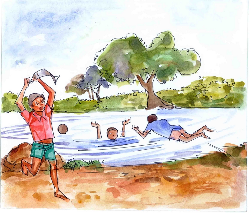ఒకరోజు రాత్రి బాగా వర్షం పడింది. గుంతల్లో అంతటా నీరు నిండింది. మరునాడు ఉదయం ఆకాశం మబ్బులతో నిండి ఉంది. అడవి జంతువుల సంచారం మొదలయింది. అయినా అలవాటైన ప్రాణాలు కద, తొట్టిగ్యాంగు ఊరికే ఉండలేకపోయింది. ప్రొద్దున రెండవ పీరియడ్ అవ్వగానే ఐదుగురూ గోడ దూకి బయట పడ్డారు.