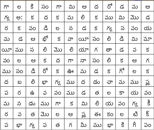 ** ఈ పట్టికలోని అక్షరాల్లో క్రింది పదాలు దాక్కొని ఉన్నాయి...
