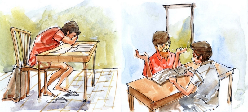 వాడు ఎనిమిదో తరగతిలో ఉండగా వాళ్ళింటికి వచ్చాడు, సూర్యం మామయ్య. సూర్యం మామయ్య పొరుగూరులో ఉపాధ్యాయుడు. రాజీవ్ని చూడగానే వాడి సమస్య ఏంటో గుర్తించాడాయన. "ఒరే , అల్లుడూ! నాకు ఓ వ్యసనం అంటుకున్నదిరా! ఏరోజుకారోజున పేపర్లో వచ్చే 'సుడోకు'; ఆదివారం పదరంగం- ఇవి చేయకుండా ఉండలేకపోతున్నాను. ఇవాల్టి పేపరూ, పోయిన ఆదివారం ప్రత్యేకమూ- ఇవ్వరాదూ, కొంచెం" అన్నాడు రాజీవ్ తో.