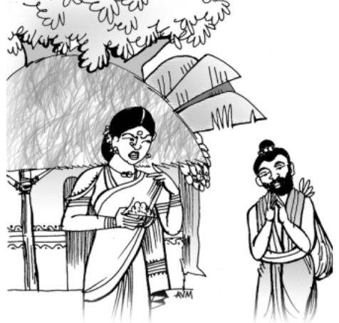 'వద్దు-వద్దు. నేను మిమ్మల్ని అడగలేదు' అన్నాడు అభిరాముడు. 'అడక్కపోయినా ఇస్తున్నాననుకో- నేను ఇచ్చేదాన్ని, నువ్వు పుచ్చుకునేవాడివి' అంది అనసూయమ్మ, కావాలని. 'కాదులెండి, ఇంకెవరికన్నా ఇవ్వండి' అన్నాడు అభిరాముడు నీళ్లు నములుతూ. 'ఏం, మీ భిక్షాపాత్రేమీ నిండుగా లేదుగా?" అడిగింది అనసూయమ్మ ఖాళీ పాత్ర కేసి చూస్తూ.