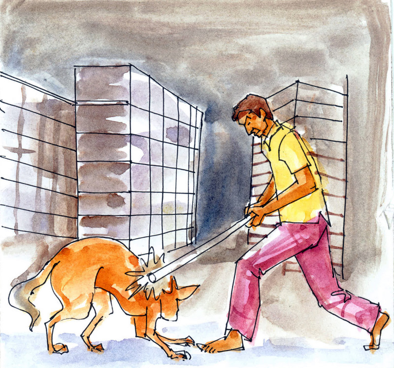 అలా నడుచుకుంటూ ఊరి చివరనున్న ఓ చెట్టుకింద సేద తీరుదామని ఆగారు. అక్కడ కొందరు పిల్లలు ఆడుకుంటున్నారు- ఒక తొండ తోకకు దారం కట్టి, అది పారిపోకుండా లాగుతూ, చిన్న చిన్న రాళ్లతో కొడుతున్నారు. అది బాధతో అటూ ఇటూ పరుగెత్తుతూ, తప్పించుకోవడానికి ప్రయత్నిస్తూ ఉన్నది. పిల్లలంతా అరుస్తూ చప్పట్లు కొడుతున్నారు.