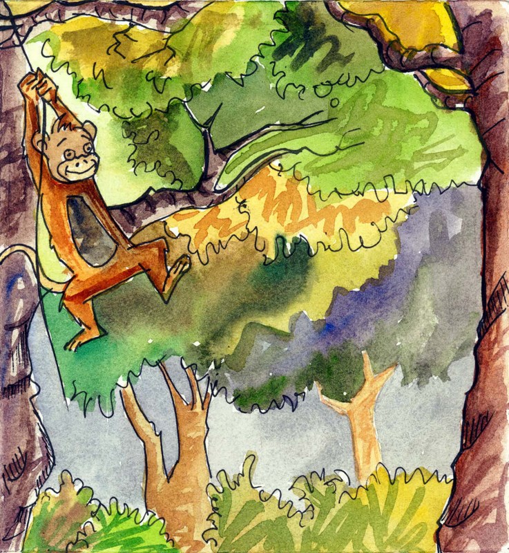 అనగా అనగా ఒక అడవి. ఆ అడవిలో ఒక పేద్ద వేప చెట్టు. దాని మీద ఒక కోతి జంట కాపురం ఉంది.