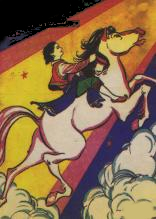 మేఘాలమీద ఉరకలెత్తే గుర్రాన్ని తోలుతున్న ఈ రాజ కుమారుడిని చూడండి! ఈ బొమ్మను 'సత్తిరాజు లక్ష్మీనారాయణ' అనే ఇరవై రెండేళ్ల కుర్రాడు, 1955లో గీశాడు.