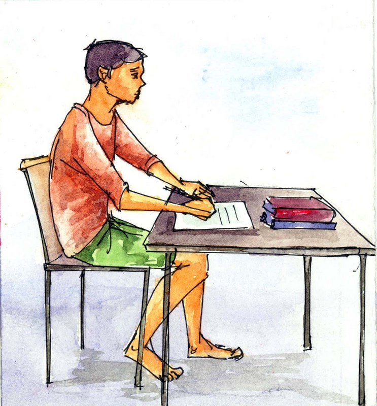 ఆనాడు నేను మా మాస్టారుకి ఇచ్చిన అసైన్మెంటు ప్రతిని ఫ్రేం కట్టించి పెట్టుకున్నాను- ఆ గోడకు వేలాడుతున్నది అదే" అని.