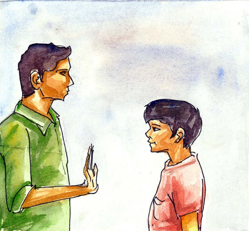 రెండు రోజుల తర్వాత అతని అసైన్మెంటు అతనికి తిరిగి ఇవ్వబడింది- అసైన్మెంటు మొదటి పేజీలో ఎర్ర ఇంకుతో పెద్ద F రాసి ఉన్నది. "క్లాసు ఐపోయాక నన్ను కలు" అని కూడా రాసి ఉన్నది క్రింద!