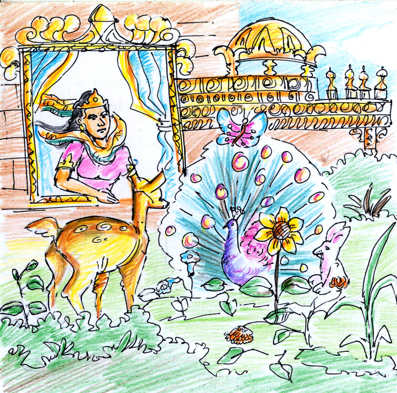 వెంటనే చీమలు రంగంలోకి దిగాయి. ఈ విషయం రాణిగారికి చెప్పాలని ఒకదాని వెనుక ఒకటి వరుసగా అంత:పురం వైపుకు పరుగు పెట్టాయి. వాటి వెనుక తుమ్మెదలు, ఆ వెనుక తేనెటీగలు, సీతాకోక చిలుకలు, పురుగులు, ఆపై పక్షులు, కుందేళ్లు, జింకలు. కానీ అంత:పురం తలుపులు మూసి ఉన్నాయి. వీళ్లెవ్వరికీ అక్కడ ప్రవేశం లేదు!