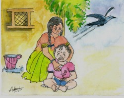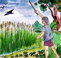 పిట్టలలొచ్చి కంకులన్నీ పొడిచి పోయాయి