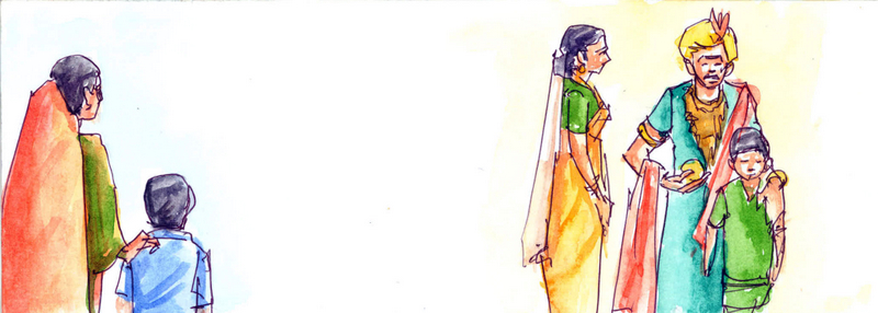 "పిన్ని చెప్పింది నిజమే నాయనా! నువ్వు నా కడుపున పుట్టటం వల్లనే ఇదంతా. నువ్వే గనక ఆమె కడుపున పుట్టి ఉంటే, ఇంత అవమానం జరిగేదా? అశక్తురాలి కడుపున ఎందుకు పుట్టావు బాబూ? ఆమె చెప్పినట్లు నీకు ఇక ఆ దేవుడే తప్ప మరో దిక్కులేదు. ఏం చేయాలన్నా ఇక ఆ భగవంతుడిని ప్రార్థించటమే నాయనా!" అని బాధపడింది.
