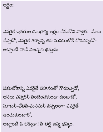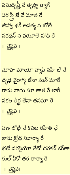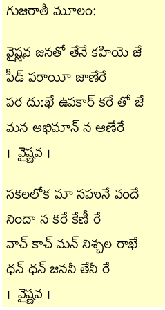 అసలు దైవ భక్తుడంటే ఎవరు ? అది తెలియజెప్పే ఈ గుజరాతీ గీతం అంటే గాంధీజీకి చాలా ఇష్టం. ఇంటర్నెట్లో http://kottapalli.in నుండి ఈ పాటని విని, డౌన్లోడు చేసుకొని నేర్చుకోండి ఇంక !