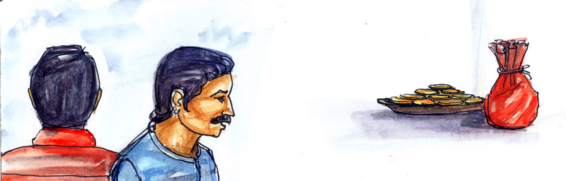 రంగయ్య కొడుకు ముందుకొచ్చి ఒక నాణెం తీసుకోబోయాడు. నాణాల సంచీని గబుక్కున వెనక్కి లాక్కున్నాడు రంగయ్య. భార్య ఒక నాణాన్ని చేతిలోకి తీసుకొని చూస్తుండగా భార్యని తిట్టి ఆ నాణాన్నీ లాగేసుకున్నాడు. 'ఏనాడూ లేనిది ఇవాళ్ల ఇలా ప్రవర్తిస్తున్నాడేమి?' అంటూ భార్య, కొడుకు ఇద్దరు ముఖాలు ముడుచుకున్నారు.