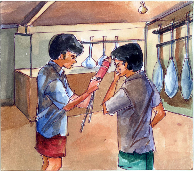 నేను ఇంకా చాలా చిన్న పిల్లవాడిగా ఉన్న రోజులవి. మా అన్న నాకంటే ఐదేళ్ళు పెద్ద. ఒకరోజున నేను, మా అన్నయ్య ఇద్దరం సైన్సు అకాడమీకి వెళ్ళాము. అక్కడ సీసాలనిండా రకరకాల రసాయన పదార్ధాలు పెట్టి ఉన్నాయి. ఆ అకాడమీ ప్రత్యేకత ఏంటంటే, దాన్ని చూసేందుకు వచ్చిన పిల్లలు ఎవరైనా సరే, అక్కడున్న రసాయనాలతో చేతనైన ప్రయోగాలు చేసుకోవచ్చు.